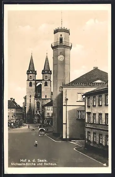 AK Hof / Saale, Michaelis-Kirche & Rathaus