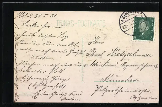 alte Ansichtskarte, gelaufen 1931, guter Zustand