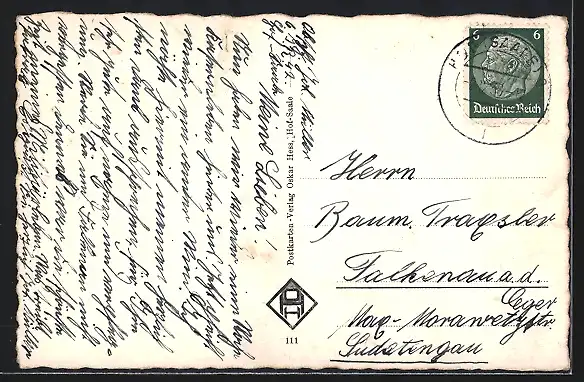 alte Ansichtskarte, gelaufen 1938, Stempelspur, guter Zustand