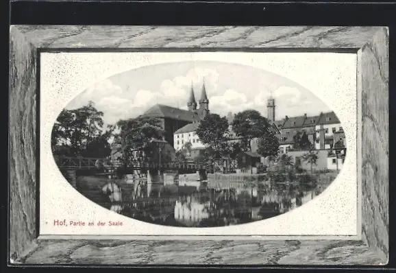 AK Hof / Saale, Partie mit Kirche am Saaleufer