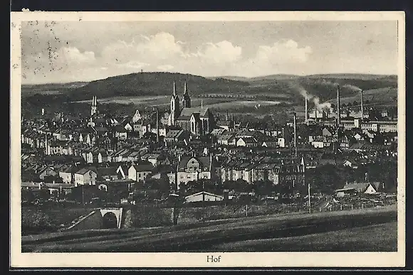 AK Hof / Saale, Totalansicht mit Bergpanorama