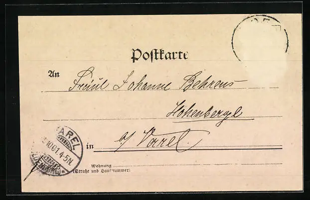 gelaufen 1901, Briefmarke entfernt, rückseitig Oberflächenschaden, guter Zustand