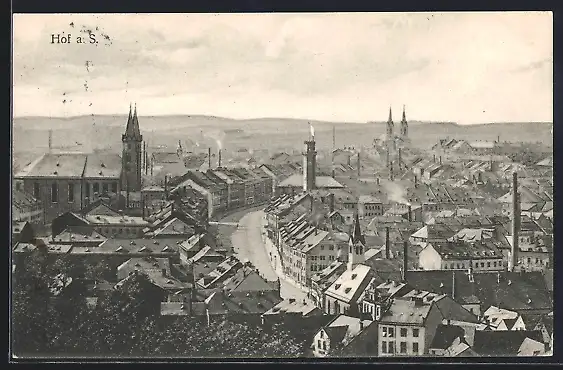 AK Hof a. S., Teilansicht mit Kirche und Strassenpartie