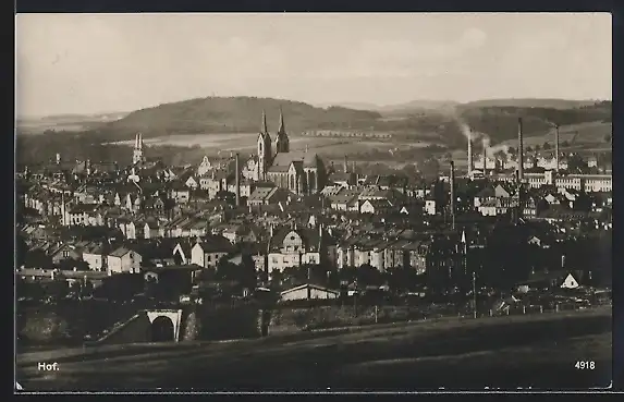 AK Hof a. d. S., Gesamtansicht von oben