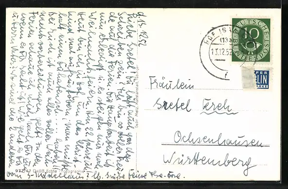 alte Ansichtskarte, gelaufen 1952, guter Zustand