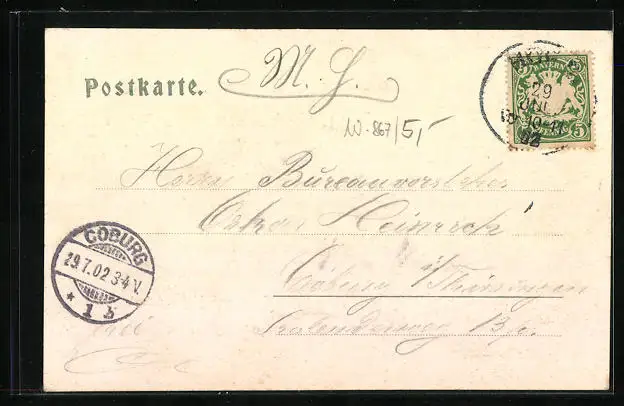 alte Ansichtskarte, gelaufen 1902, guter Zustand