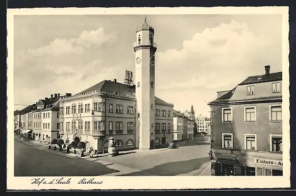 AK Hof a. d. Saale, Strassenpartie mit Rathaus