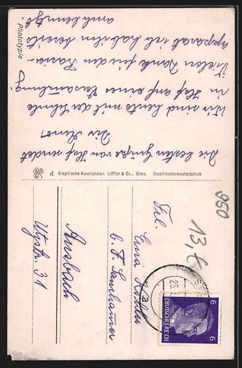 alte Ansichtskarte, gelaufen, Eckschaden re. unten