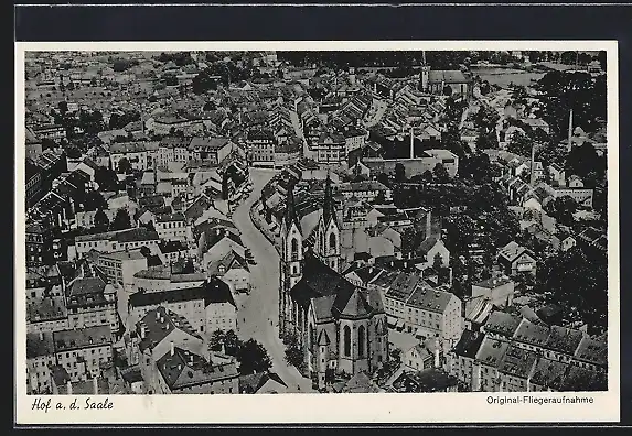 AK Hof i. B., Blick zur Kirche, Fliegeraufnahme