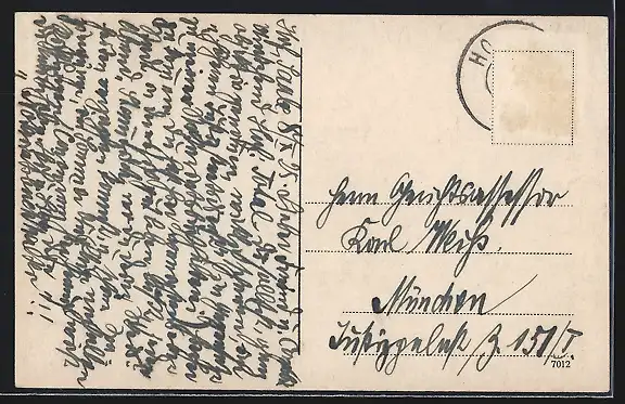 alte Ansichtskarte, gelaufen, Briefmarke entfernt, guter Zustand