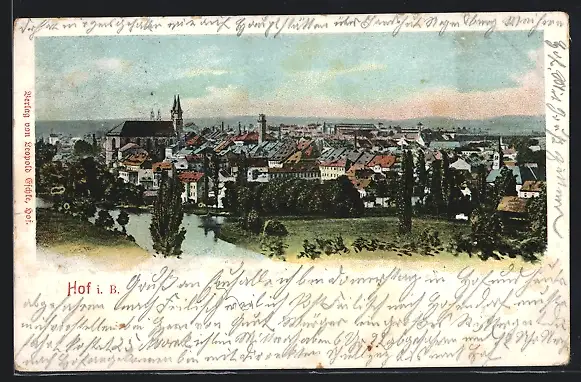 AK Hof i. B., Gesamtansicht aus der Vogelschau