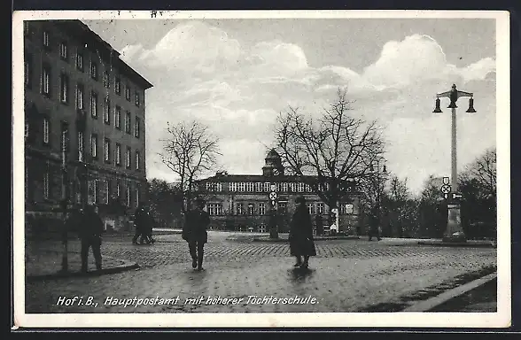 AK Hof i. B., Hauptpostamt mit höherer Töchterschule