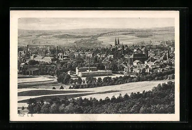 AK Hof i. B., Ortsansicht aus der Vogelschau
