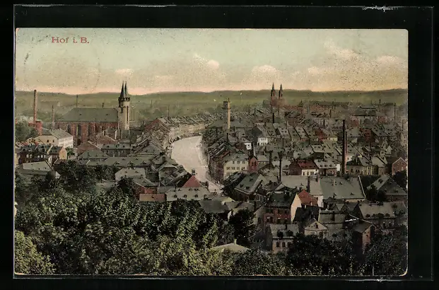 AK Hof i. B., Ortsansicht aus der Vogelschau
