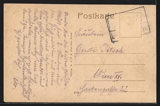 alte Ansichtskarte, gelaufen, Briefmarke entfernt, guter Zustand