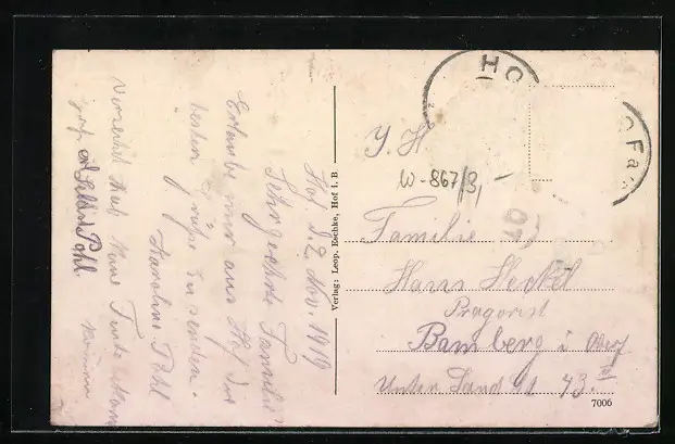 alte Ansichtskarte, gelaufen 1919, Briefmarke entfernt, rückseitig Oberflächenschaden, guter Zustand