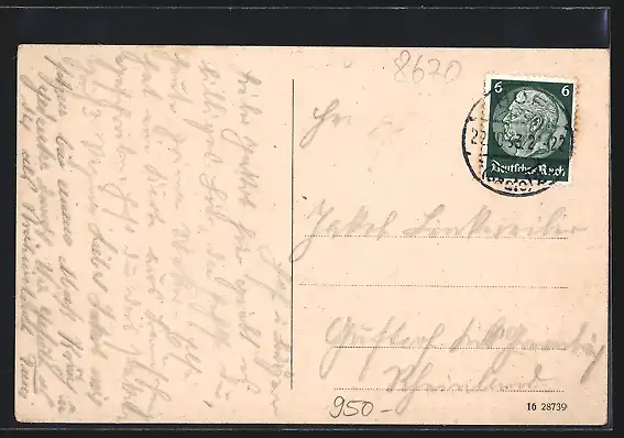 alte Ansichtskarte, gelaufen 1933, Einriss unten re., guter Zustand