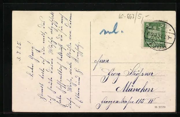 alte Ansichtskarte, gelaufen 1925, guter Zustand