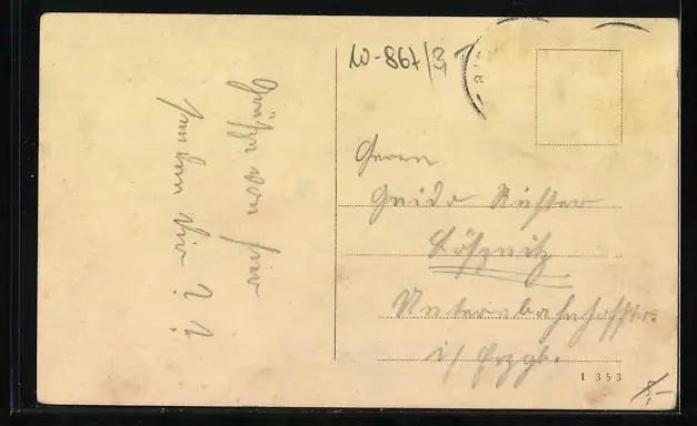 alte Ansichtskarte, gelaufen, Briefmarke entfernt, guter Zustand