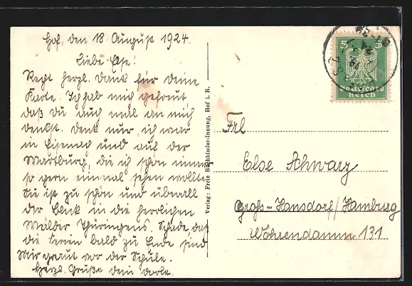 alte Ansichtskarte, gelaufen 1924, guter Zustand