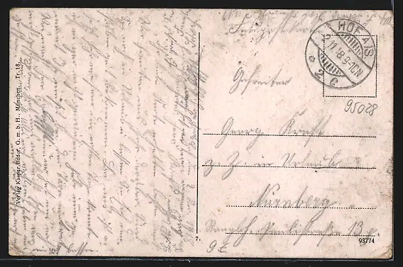 alte Ansichtskarte, gelaufen 1918, Abriebspur re. unten, guter Zustand