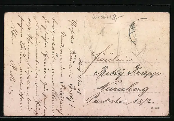 alte Ansichtskarte, gelaufen 1918, Briefmarke entfernt, Bugspur oben li., Ecken bestoßen, guter Zustand