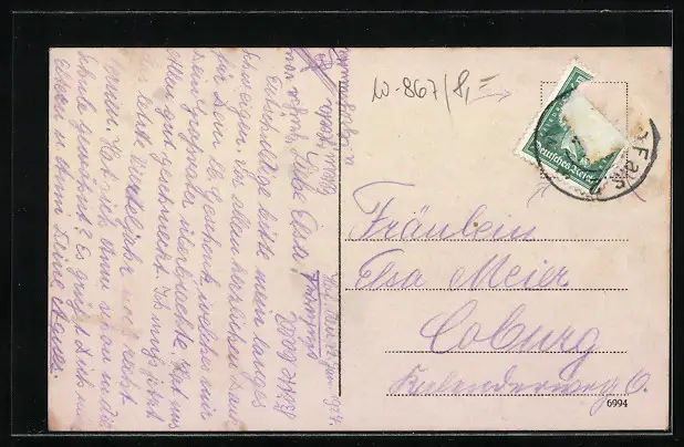 alte Ansichtskarte, gelaufen 1927, Briefmarke entfernt, guter Zustand