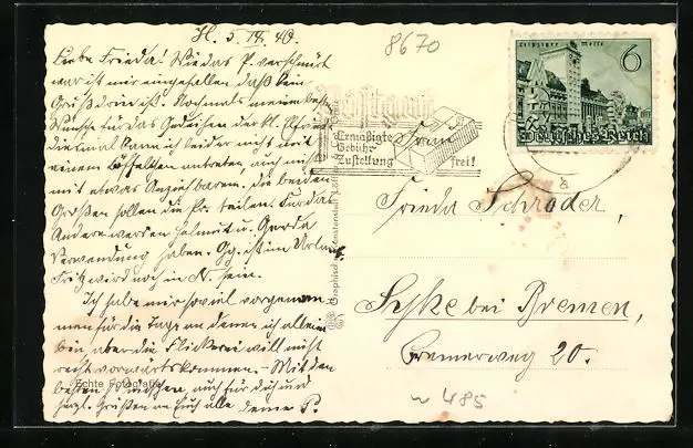 alte Ansichtskarte, gelaufen 1940, guter Zustand