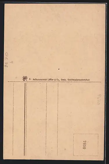 Personenbezogene Daten auf der Rückseite der Karte wurden durch blauen Textmarker unkenntlich gemacht. Die blauen Stellen sind auf die Vorderseite durchgeweicht und wirken sich negativ auf das Postkartenfoto aus