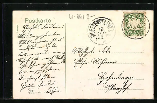 alte Ansichtskarte, gelaufen 1906, Stempelspur, guter Zustand