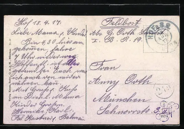 alte Ansichtskarte, gelaufen 1917, guter Zustand