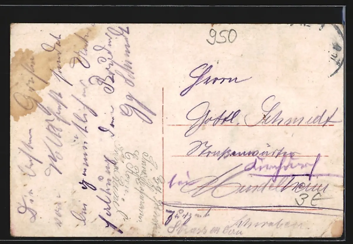 alte Ansichtskarte, gelaufen, Briefmarke entfernt, guter Zustand