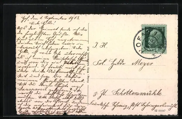 alte Ansichtskarte, gelaufen, Einriss unten mittig, guter Zustand