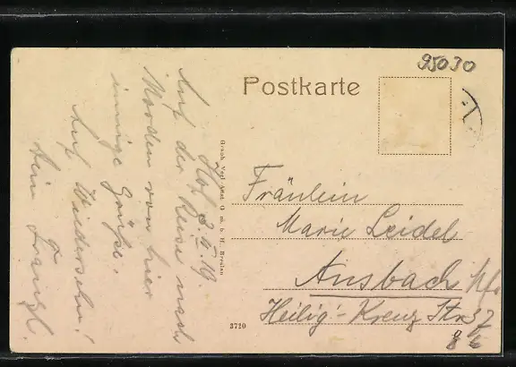 alte Ansichtskarte, gelaufen 1919, Briefmarke entfernt, Eckknicke re. unten, vorderseitig Klebe- und Papierreste, guter Zustand