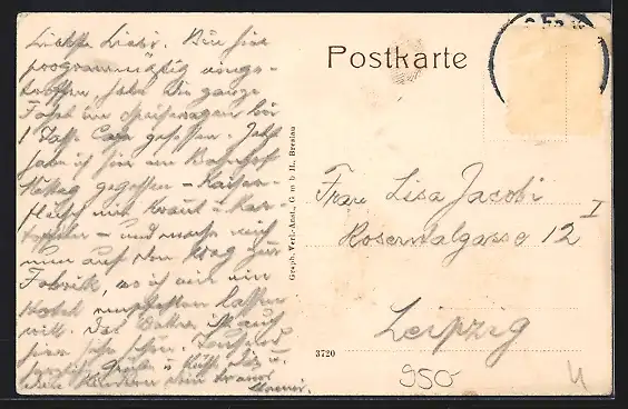 alte Ansichtskarte, gelaufen, Briefmarke entfernt, Stempelspur, guter Zustand