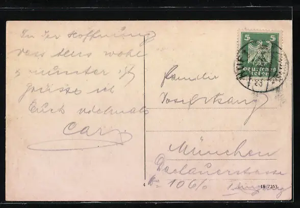 alte Ansichtskarte, gelaufen, Eckknick oben links, guter Zustand