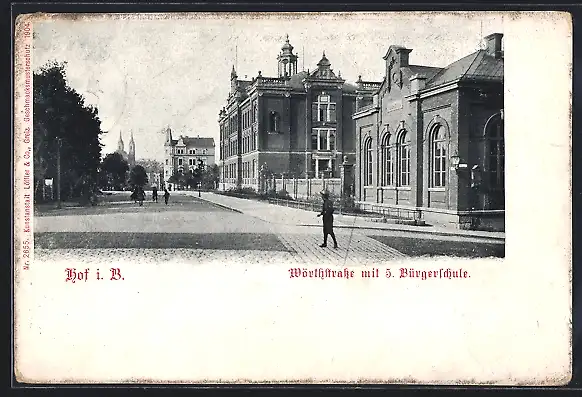 AK Hof i. B., Wörthstrasse mit 5. Bürgerschule