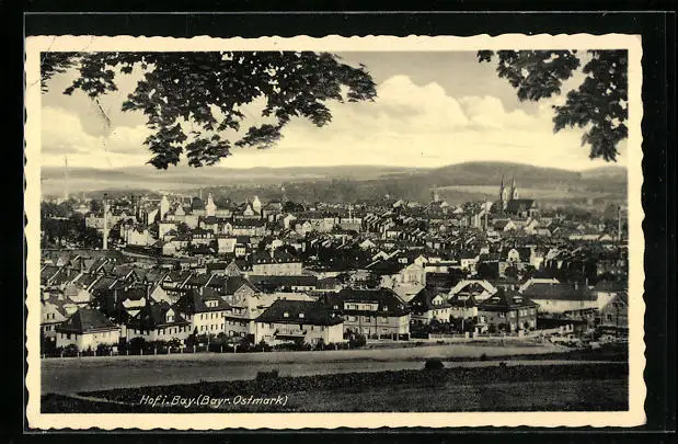 AK Hof i. Bay., Ortsansicht von einer Anhöhe aus