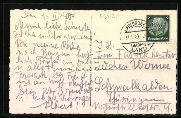 alte Ansichtskarte, gelaufen 1940, Eckknick li. oben, guter Zustand
