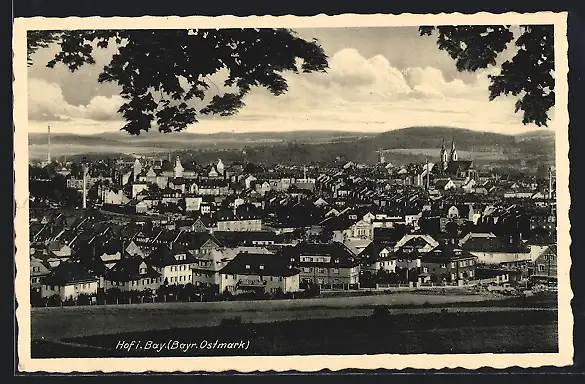 AK Hof i. Bay., Ortsansicht von einer Anhöhe aus