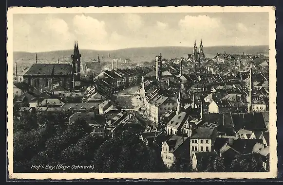 AK Hof in Bayern, Totalansicht vom Ort
