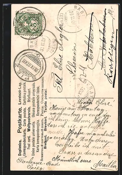 alte Ansichtskarte, gelaufen 1907, guter Zustand