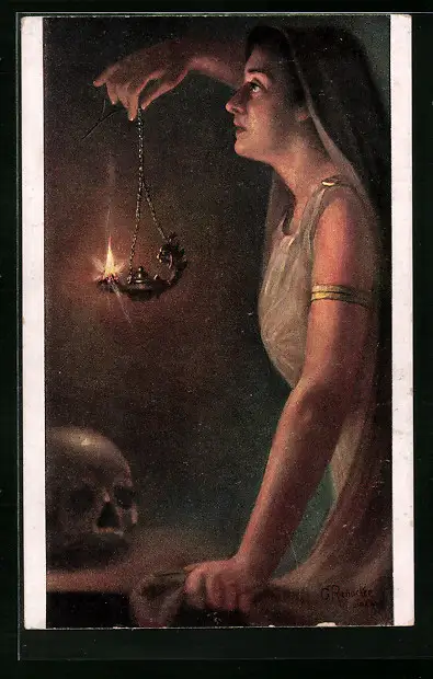 AK Hoffnung, Frau mit einer Lampe und Totenkopf