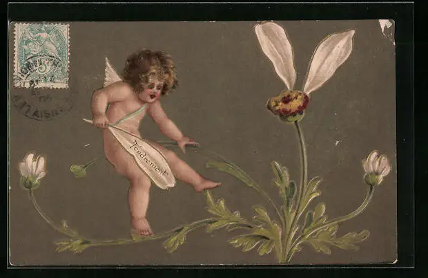 AK Hoffnungsvoller Amor mit Blumenorakel