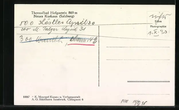 AK Hofgastein, Neues Kurhaus mit Bergblick