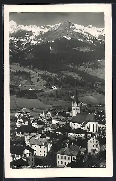 AK Hofgastein, Teilansicht mit Kirche gegen das Gebirge