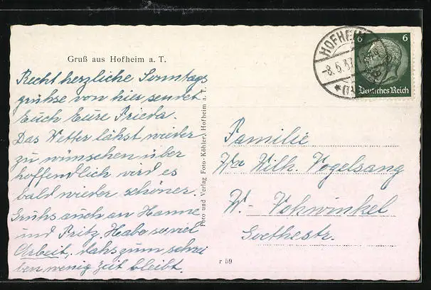 alte Ansichtskarte, gelaufen 1937, guter Zustand