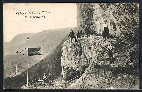 AK Hohe Wand, Bergsteiger am Aussichtspunkt am Johann Hanselsteig