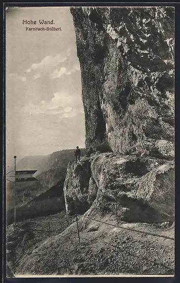 AK Hohe Wand /Karnitsch-Stüberl, Bergsteiger vor der Felswand