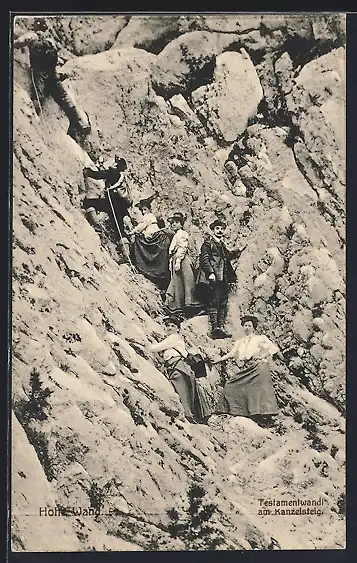 AK Hohe Wand, Testamentwandl am Kanzelsteig mit Bergsteigern